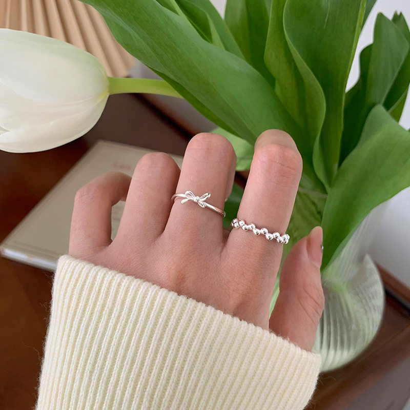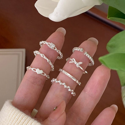 甜美叠戴戒指女细圈百搭精致蝴蝶结爱心开口指环ins风网红食指戒