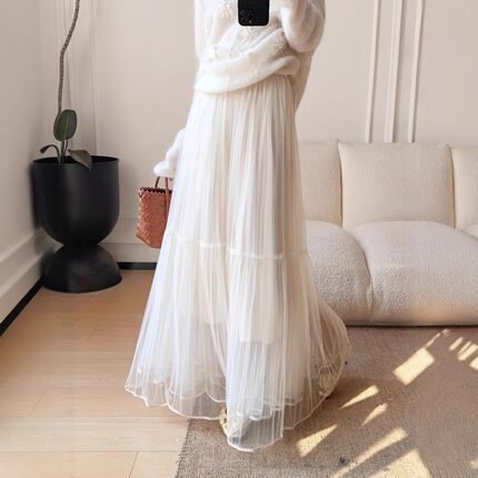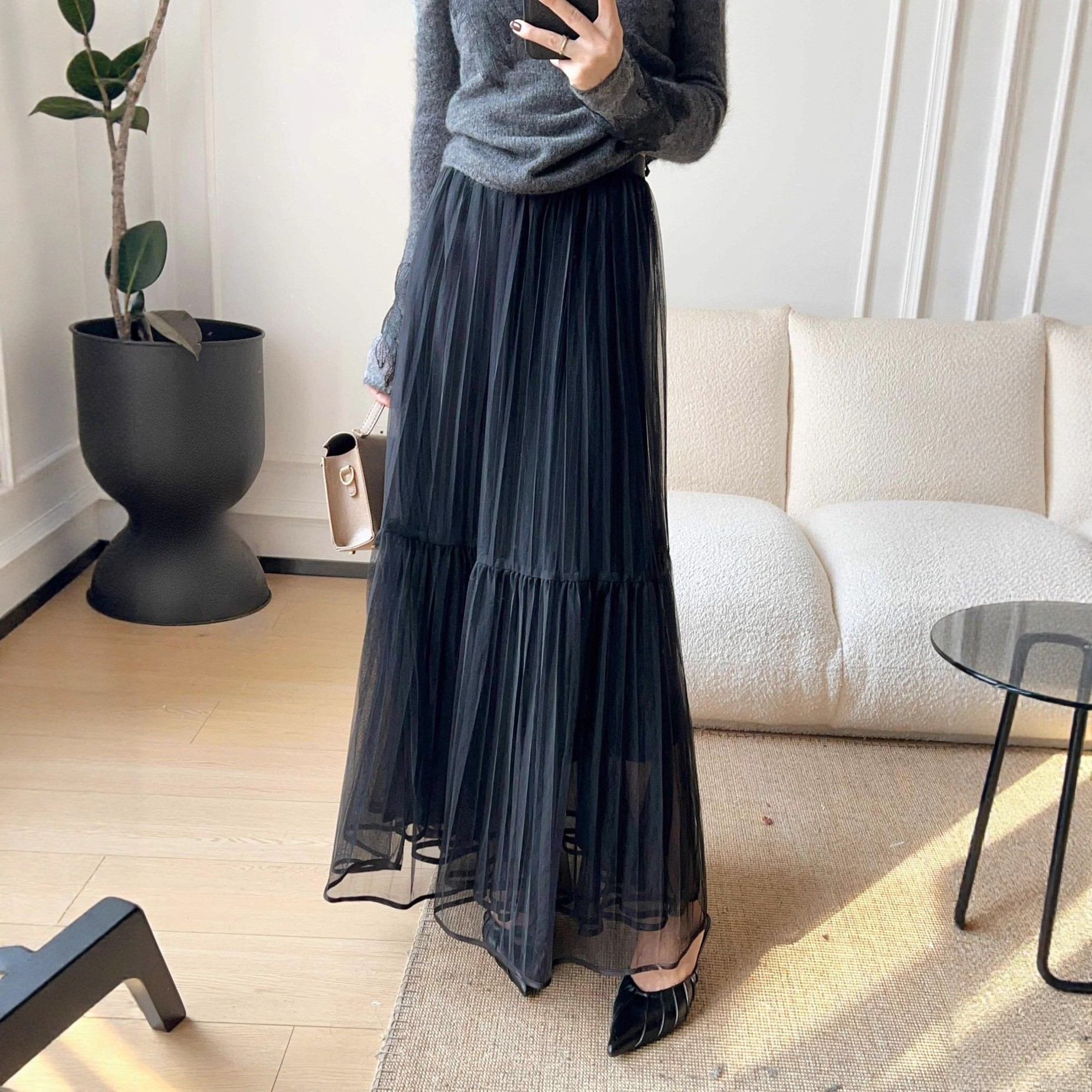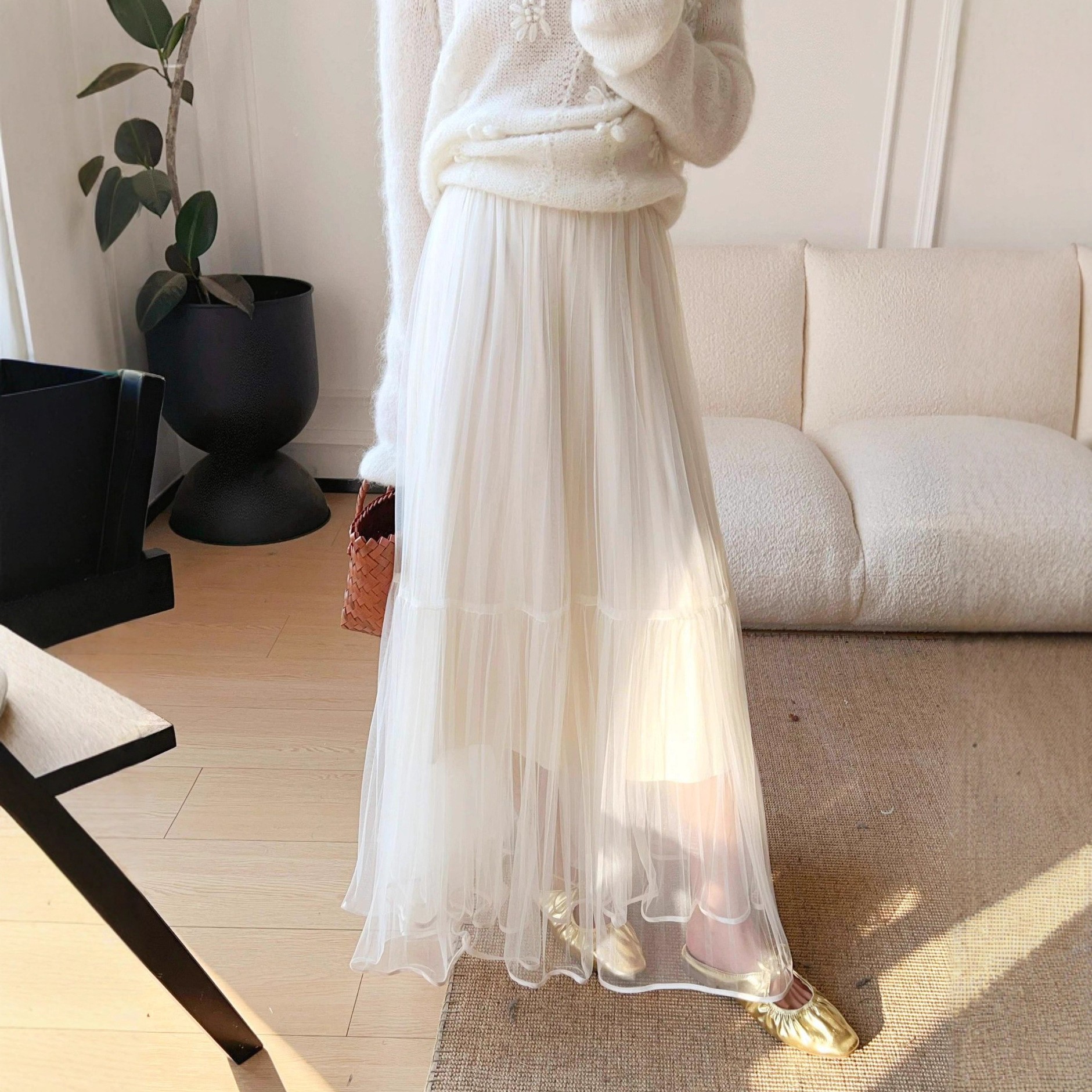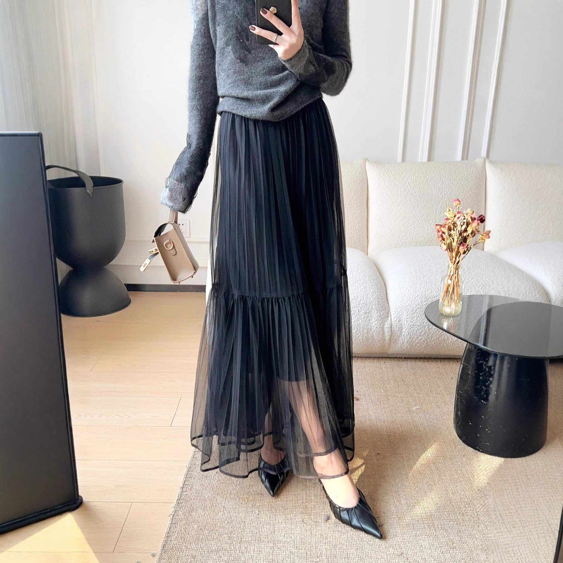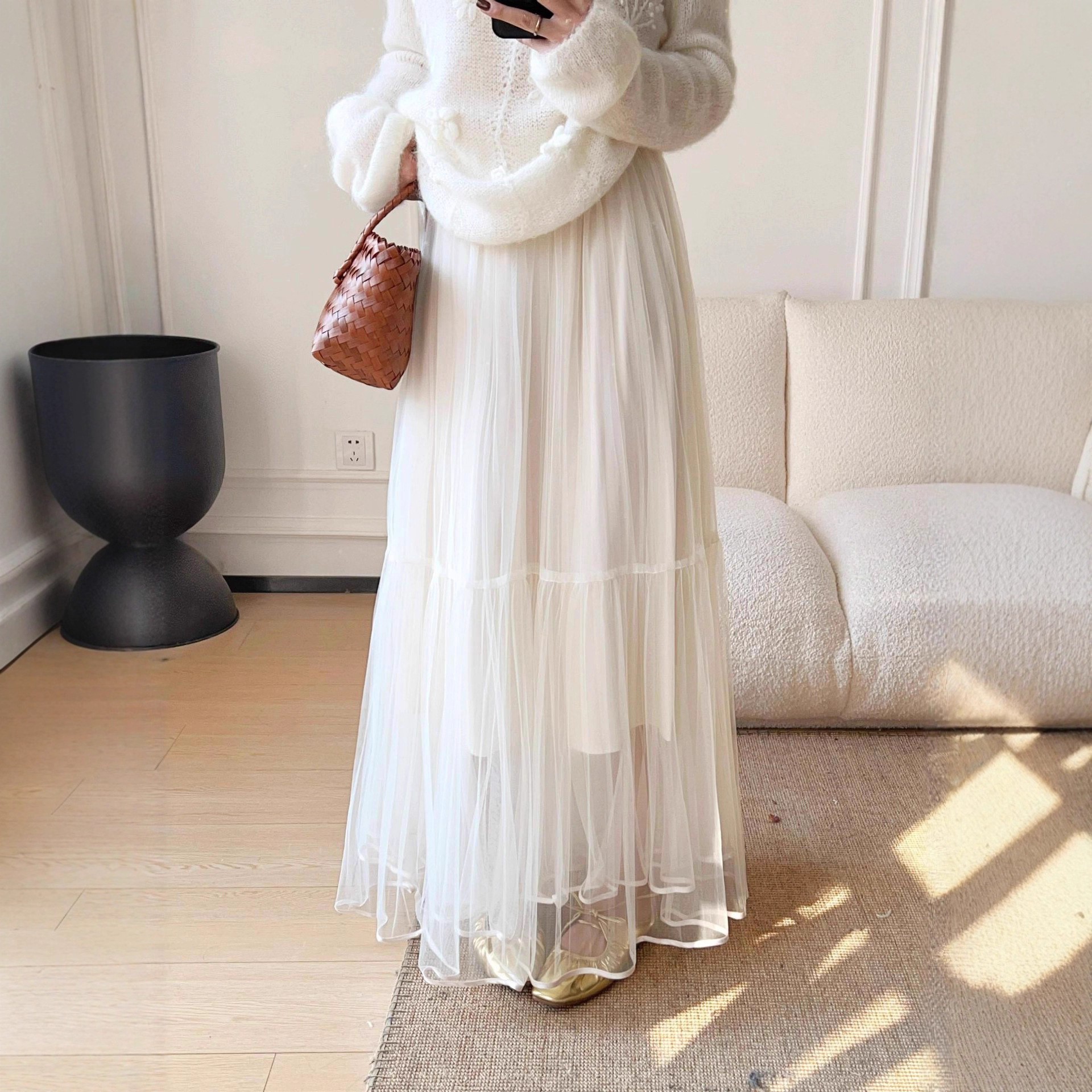 南油高端女装2025新款春夏高腰显瘦a字裙中长款蓬蓬纱裙子半身裙