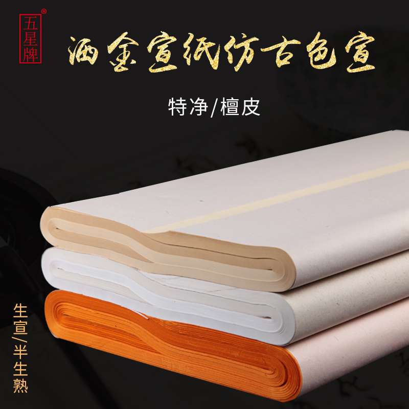 【五星牌】四尺六尺参展用纸 仿古色宣洒金 六尺对开八尺屏生宣纸半生半熟书法参展作品考级专用纸