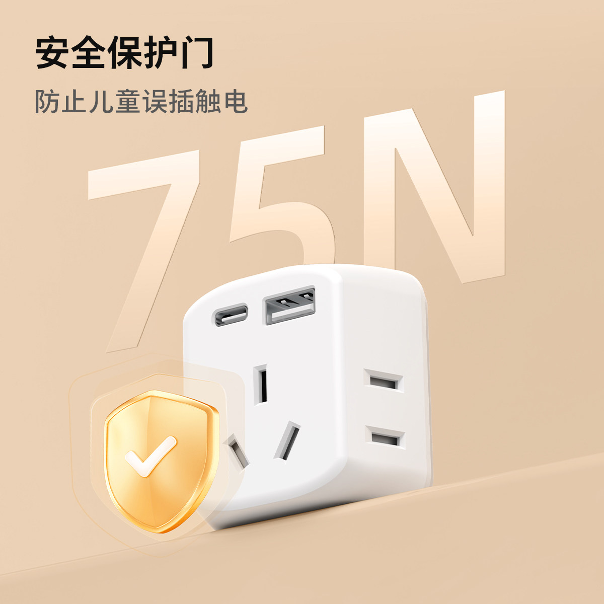 飞利浦迷你小魔方插座一转五插头转换器适用卧室厨房无线插座扩展