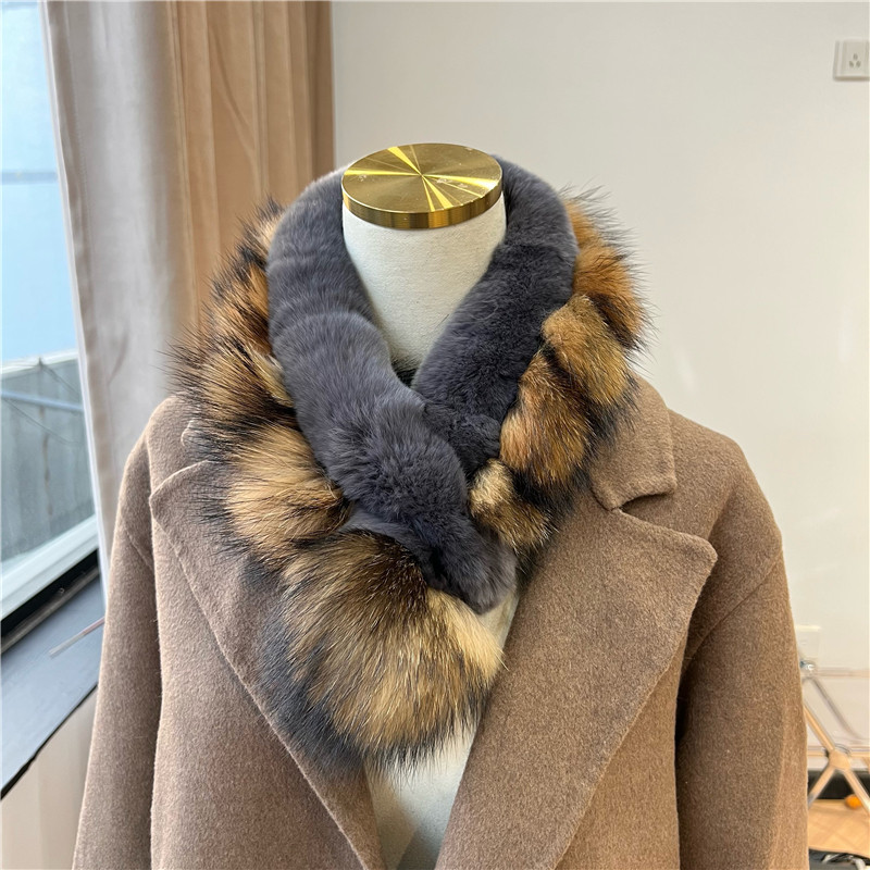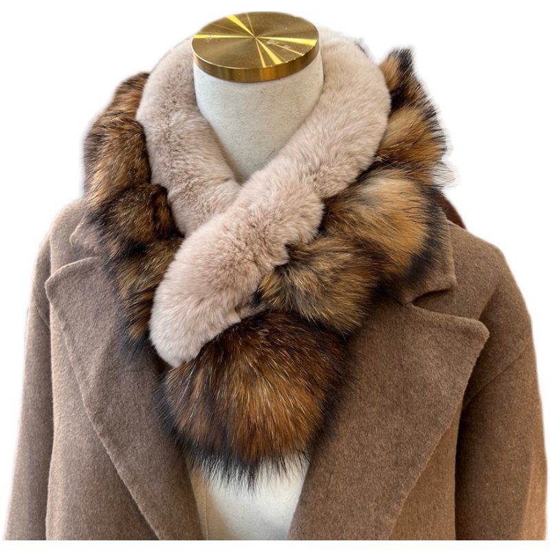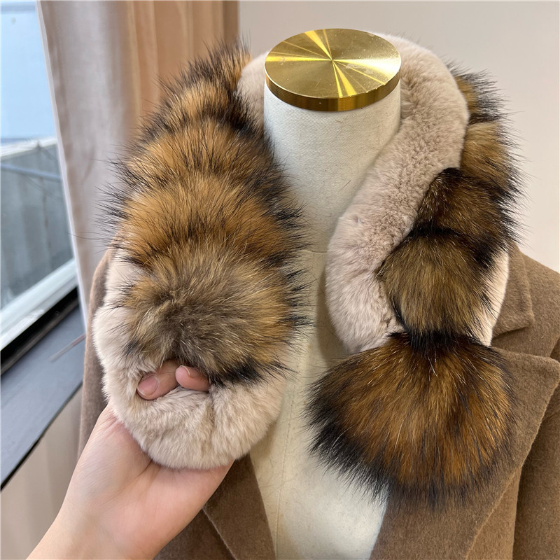 拼色貉子毛毛球围脖獭兔毛保暖加厚围巾韩国秋冬交叉毛绒围脖