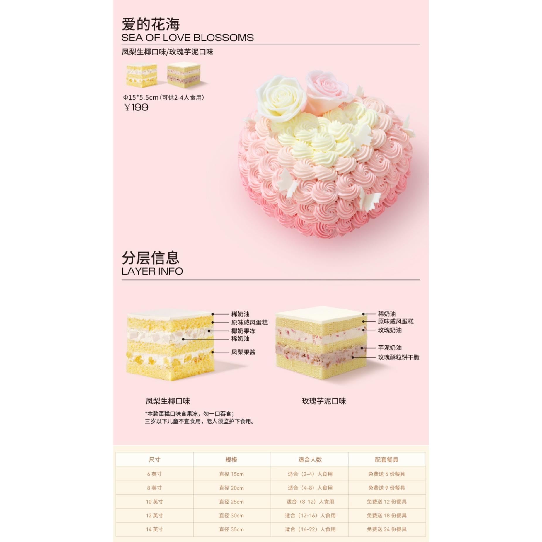 好利来新款生日蛋糕爱的花海凤梨生椰玫瑰芋泥味动物奶油同城配送