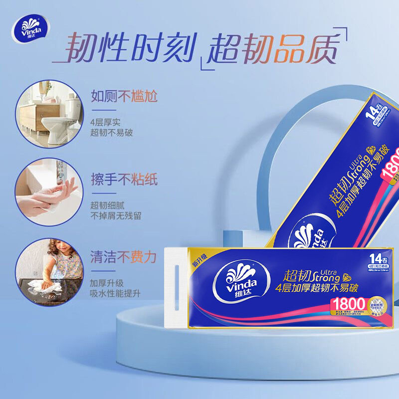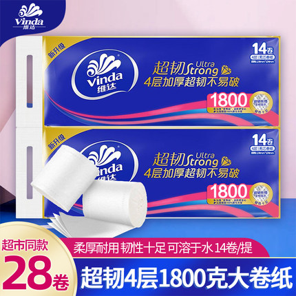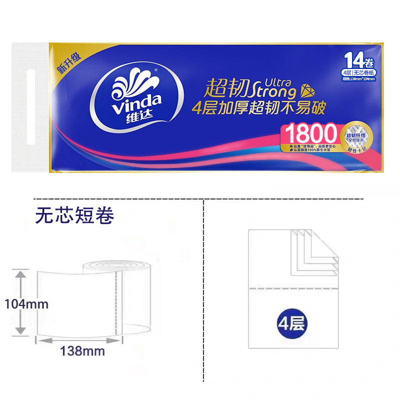 维达超韧无心4层卷纸1800克卷筒纸厕纸家用卫生纸厕纸无芯卷纸