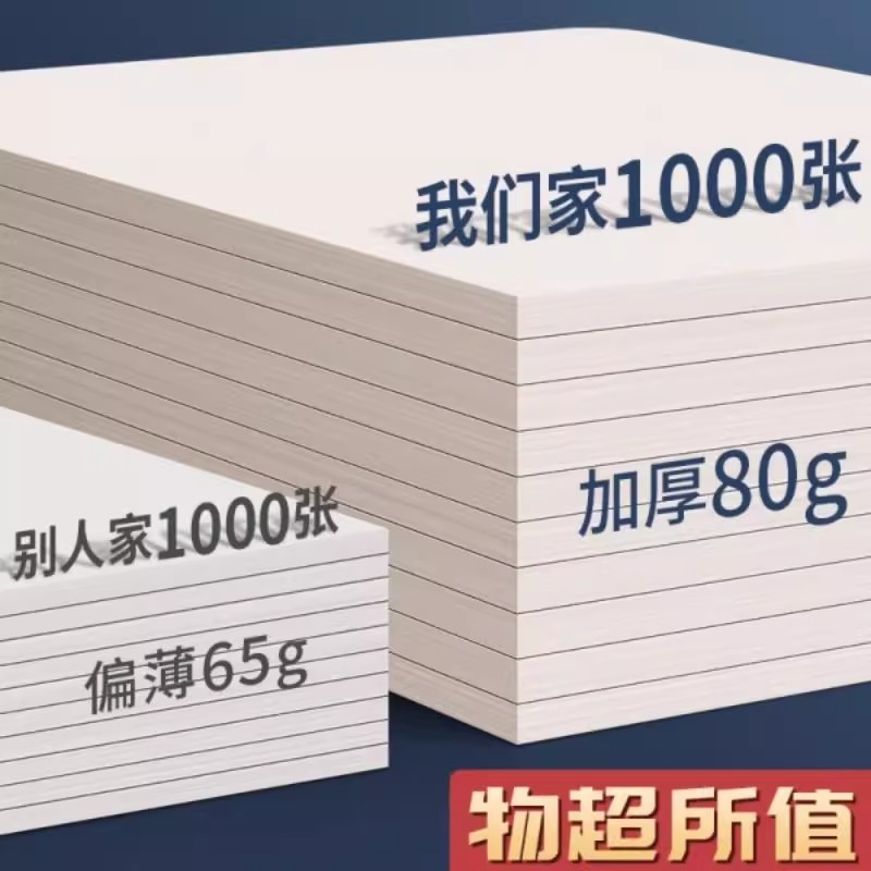【1000张】B5草稿纸学生用草稿本子加厚小学生初中高中生大学生考研专用的老师推荐款演算空白数学打草稿验算纸练字本米黄护眼批发