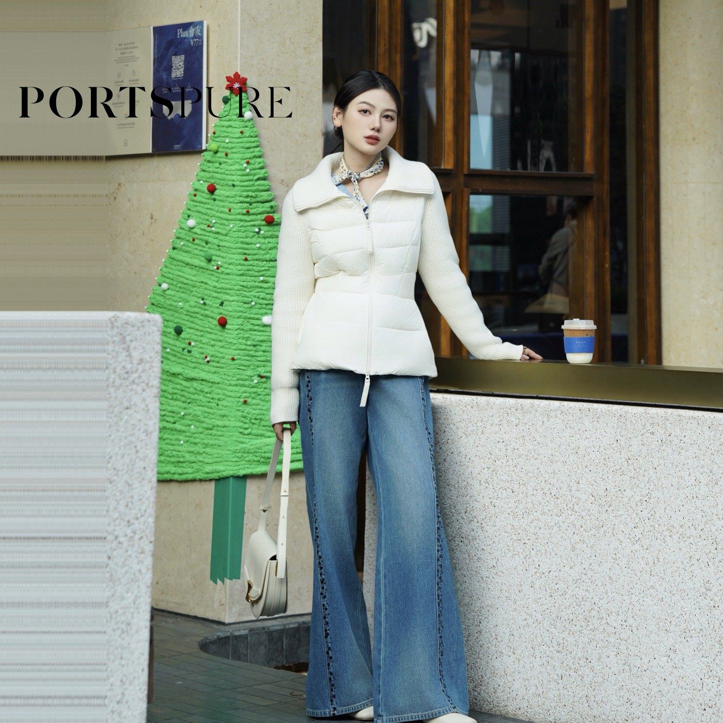 商场同款 宝姿PORTSPURE女装2025秋冬新品针织拼接修身收腰羽绒服