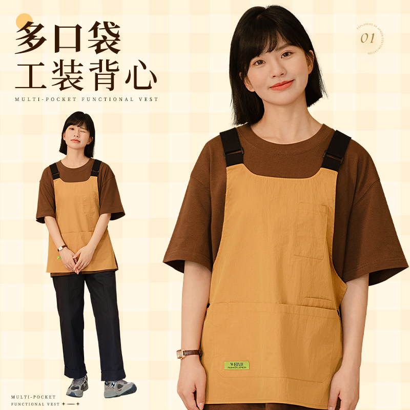 马甲背心围裙定制防水防油餐饮咖啡师奶茶店专用美发师坎肩工作服