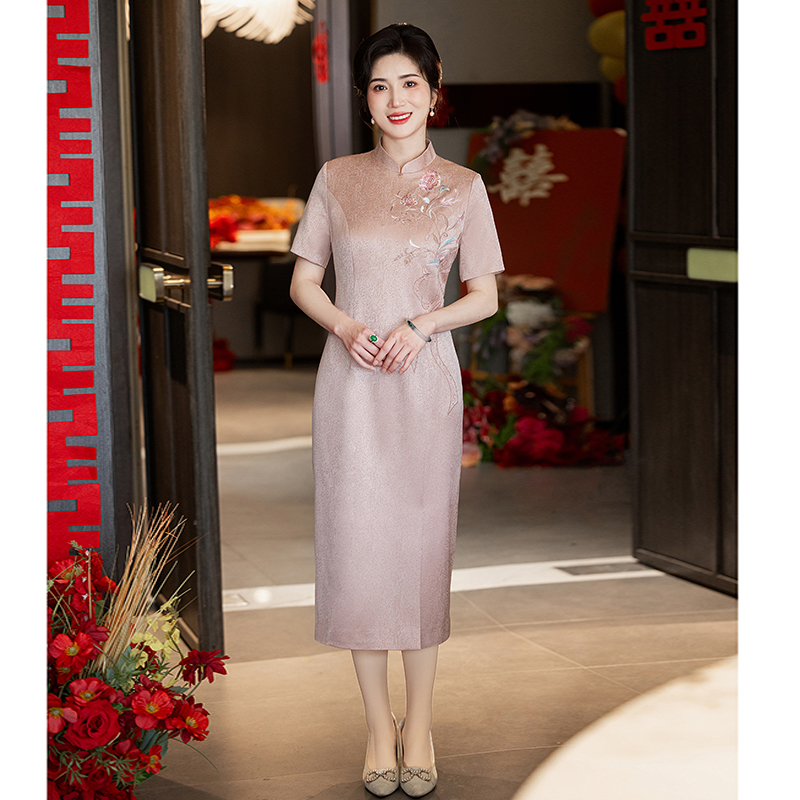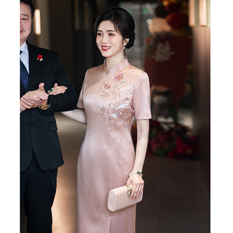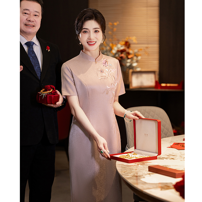 粉色妈妈装结婚礼服高贵年轻新中式喜婆婆婚宴装旗袍喜服平时可穿