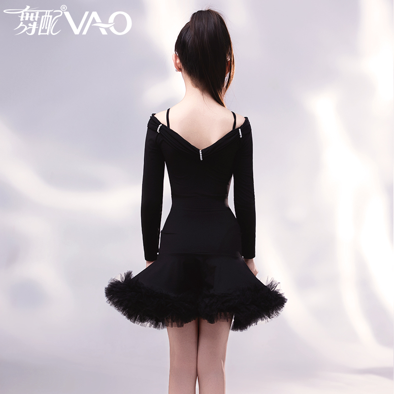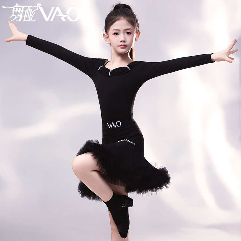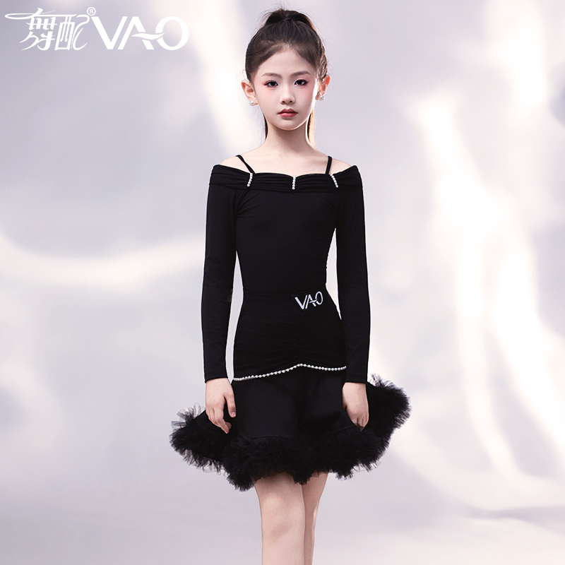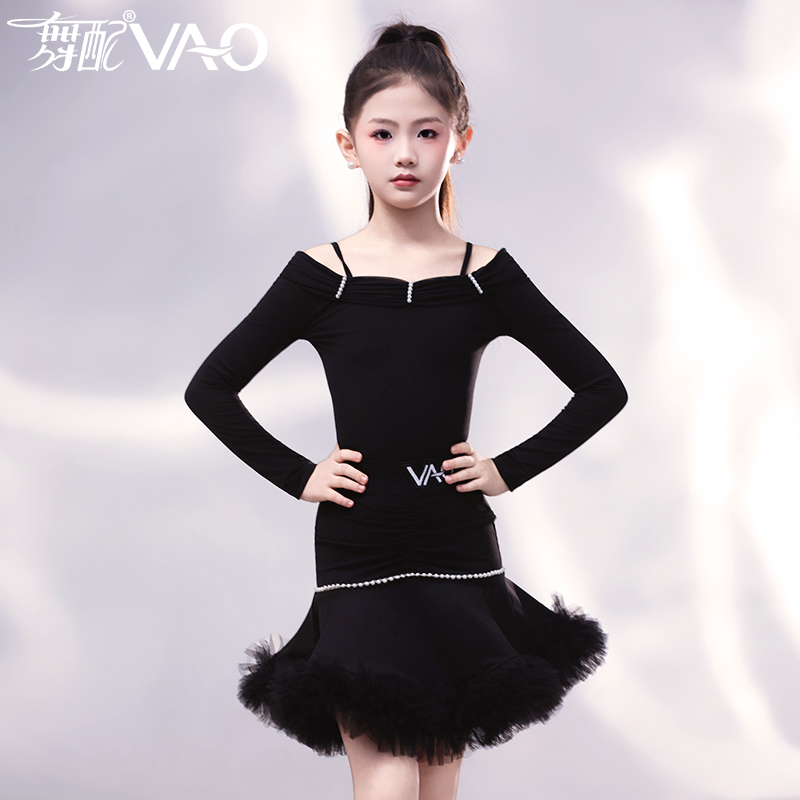 2025秋冬新款拉丁舞服VAO舞配舞服黑色花边套装拉丁舞练功服女童