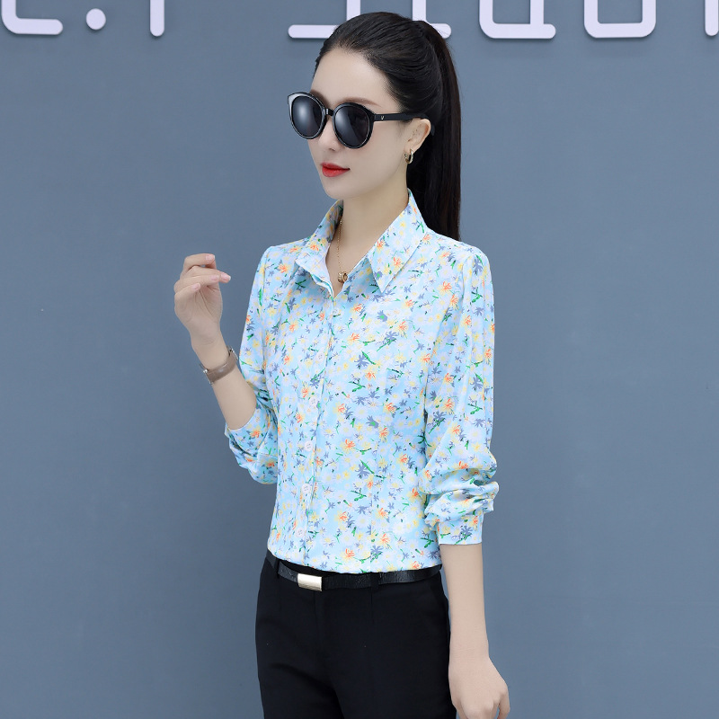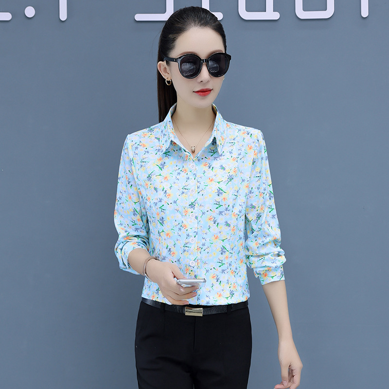碎花衬衫女长袖高档上衣新款韩版春秋衬衣中年妈妈装印花现货
