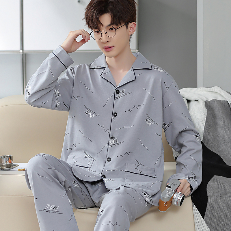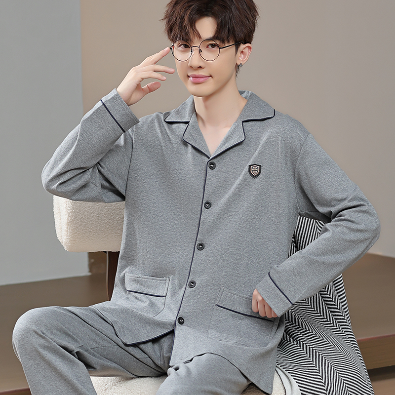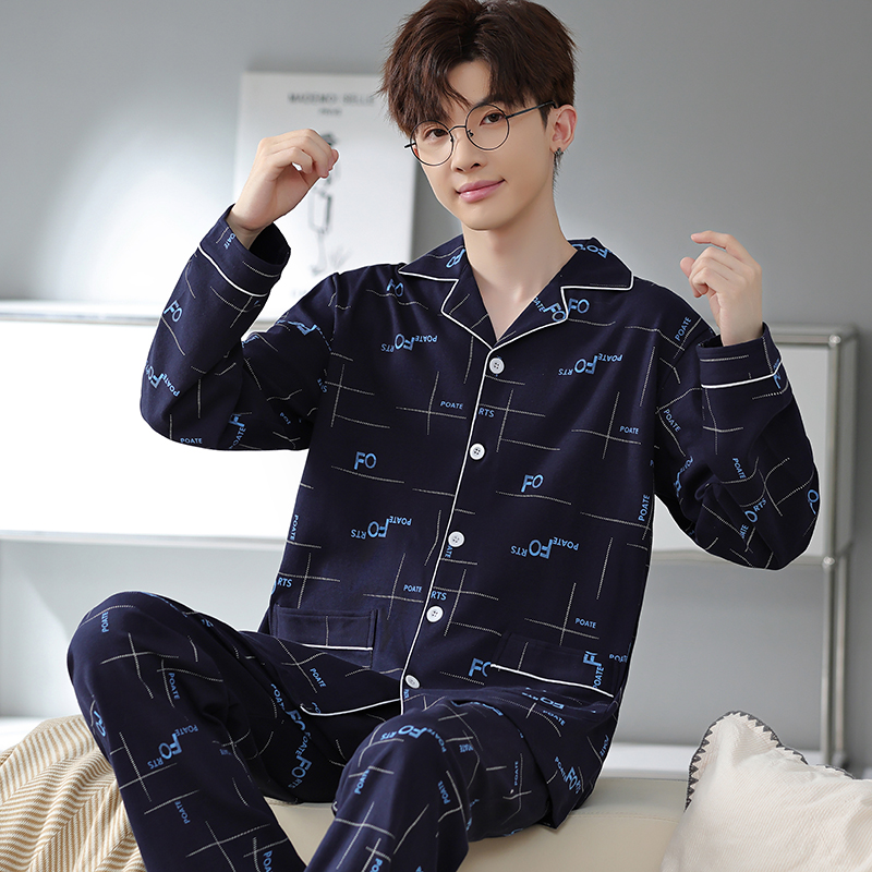 加厚冬季男士睡衣100%纯棉长袖中青年老年套装全棉宽松男装两件套