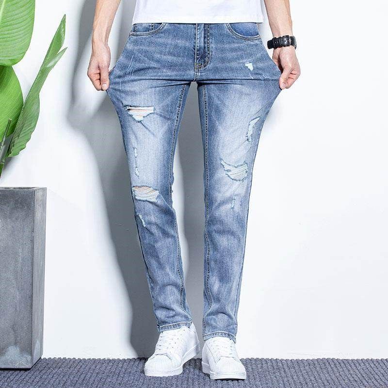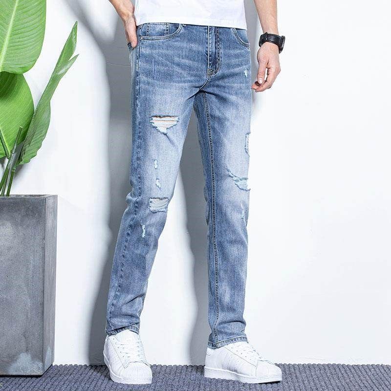 春季牛仔裤男士夏季超薄款2023新款潮牌韩版潮流长裤破洞修身裤子