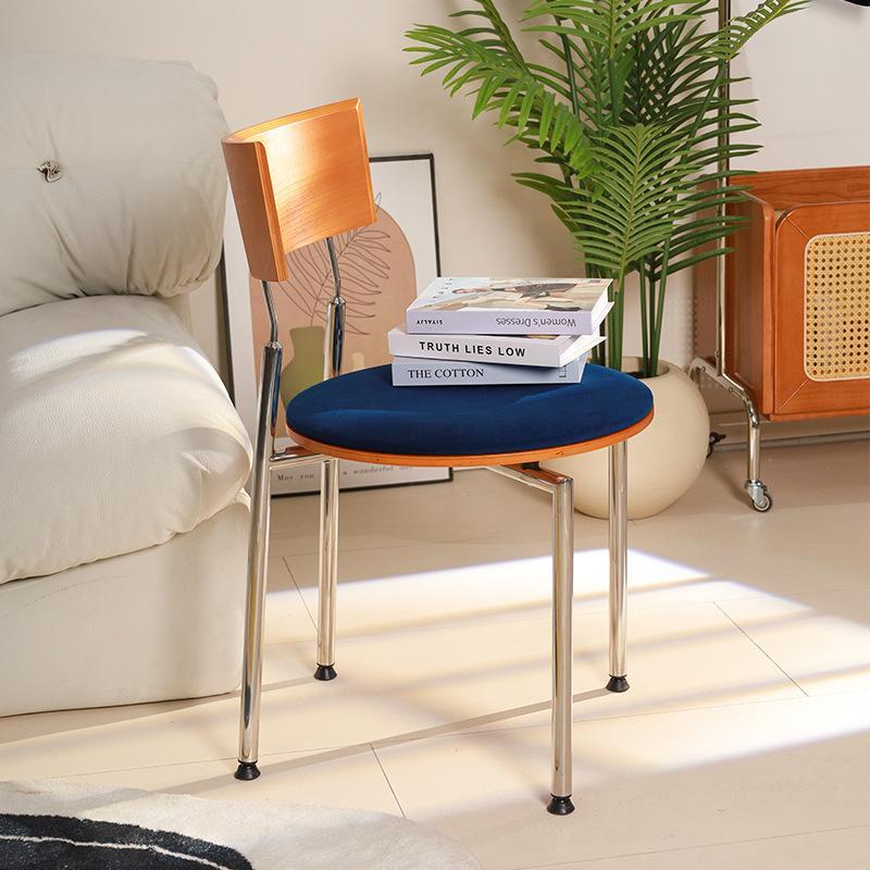 覆古实木餐椅家用靠背椅网红ins中古椅不锈钢饭厅凳子设计师椅子