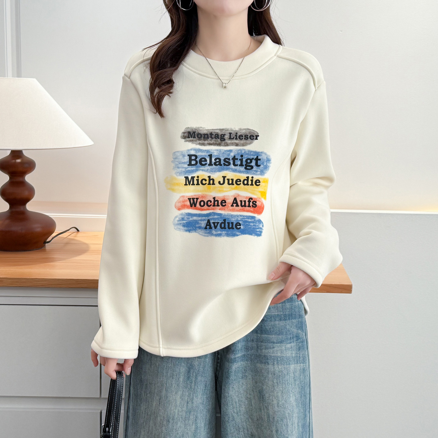 女大码打底衫加厚加绒2025秋冬新款胖m200斤字母印花遮肚保暖卫衣