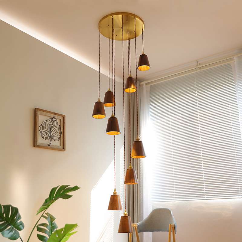 北欧胡木色吊灯复式旋转楼梯间别墅中空大厅灯楼道跃层实木灯具-