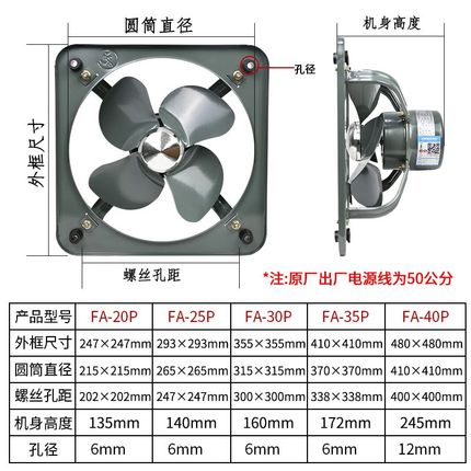 金羚排气扇8寸厨房卫生间10/12寸强力抽油烟方型铁扇工业换气扇