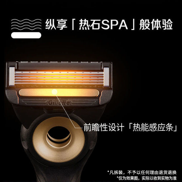 吉列LABS热感剃须刀手动男士刮胡发热石SPA级5层1架2头礼盒套装