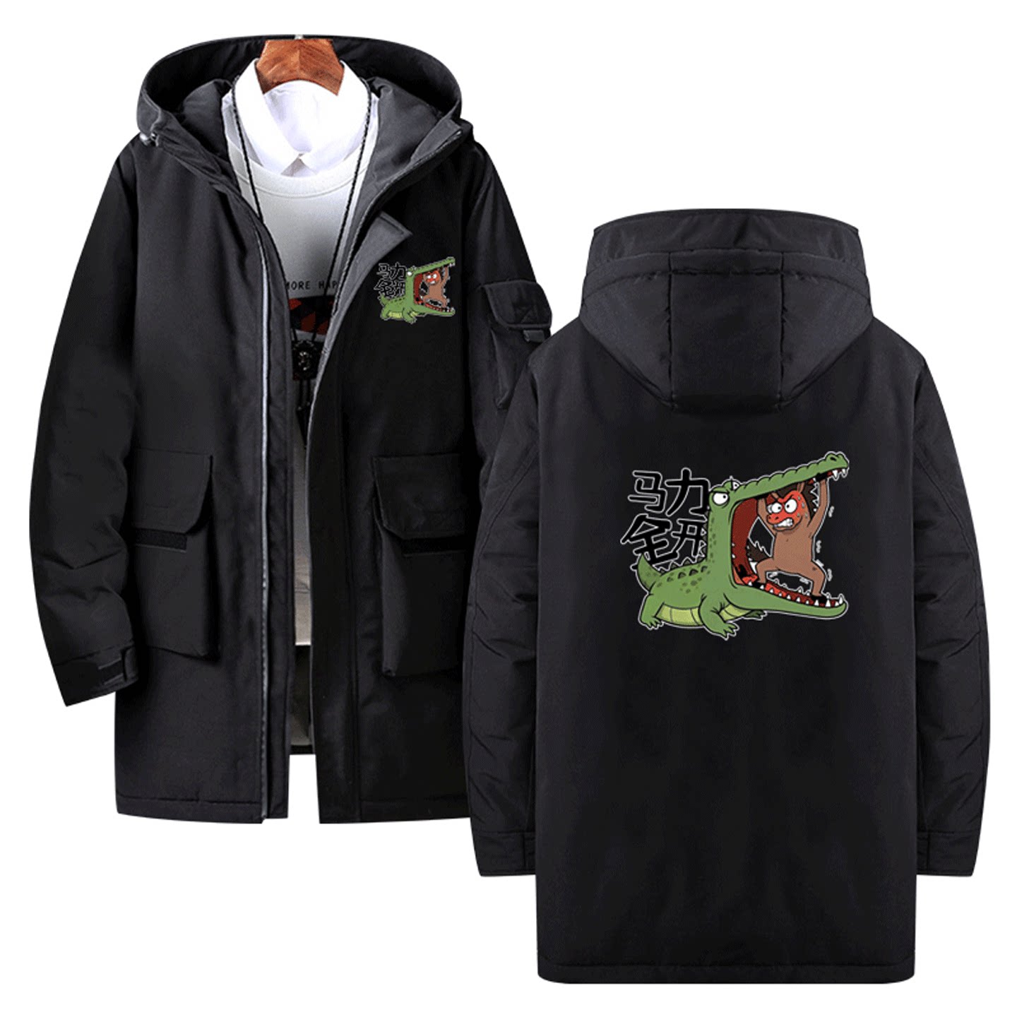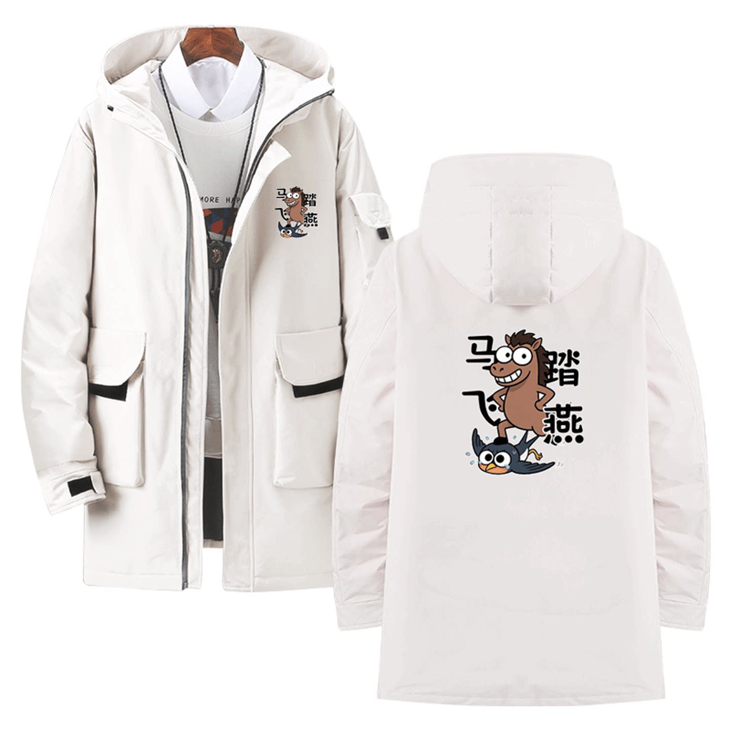 2026年马年新年卡通印花秋冬可爱男女情侣可定制外套中长款羽绒服