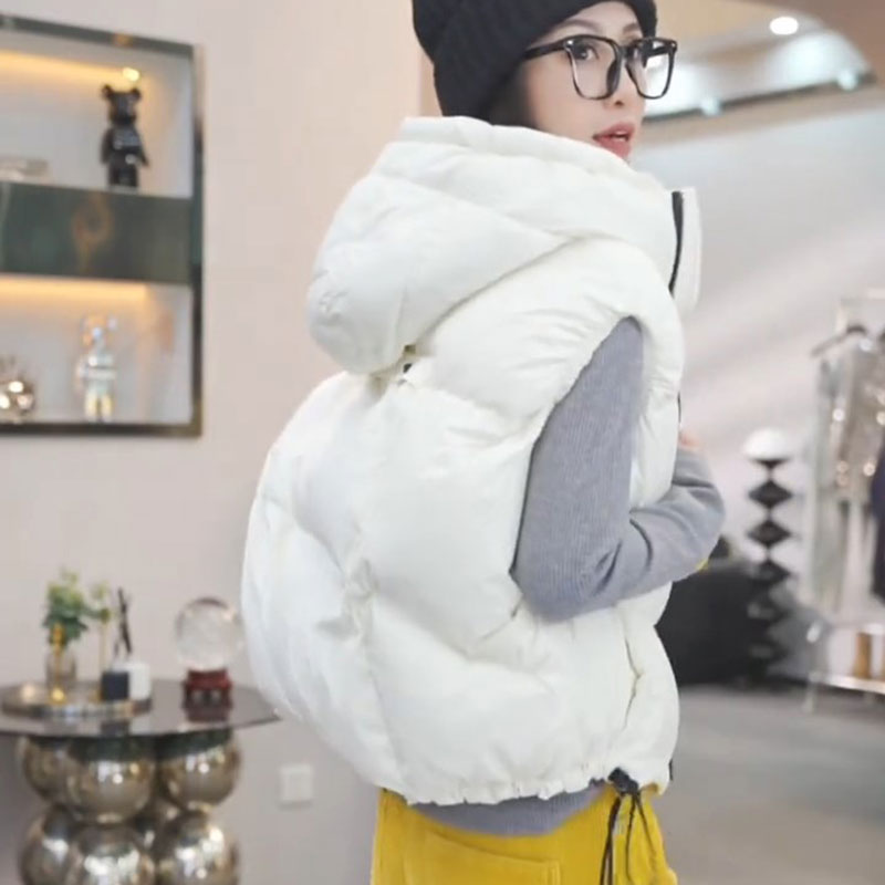韩版宽松连帽羽绒棉马甲2025秋冬新款女短款马夹加厚背心坎肩外套