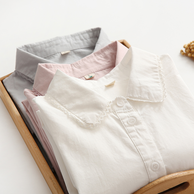 蕾丝花边领纯棉白衬衫女