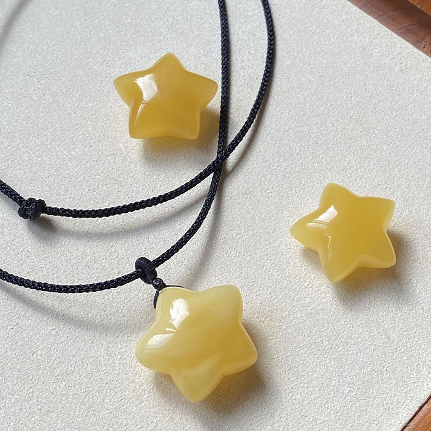 储时手造天然琥珀蜜蜡五角星星吊坠项链幸运星星情侣闺蜜配饰挂件