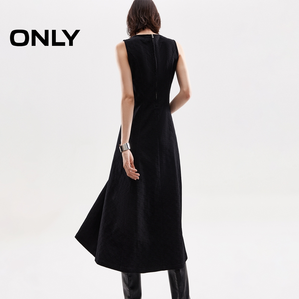ONLY2025秋季新款拼接剪裁圆领牛仔无袖中长款连衣裙女|125342021
