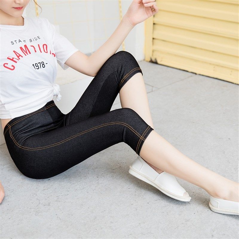 夏仿牛仔七分打底裤女薄款五分打底裤中裤大码7分打底裤外穿弹力