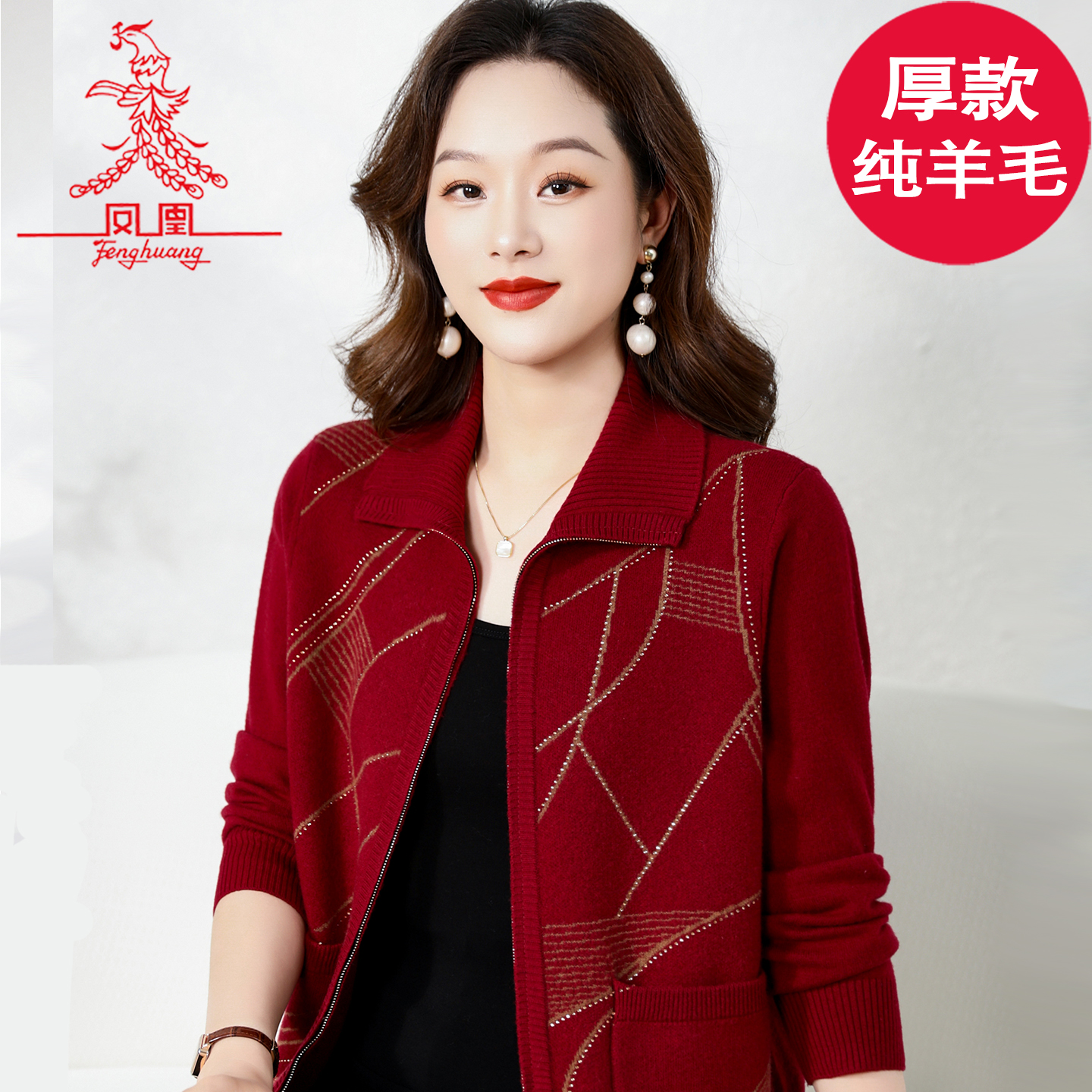【精纺纯羊毛】妈妈装全拉链100羊毛外套秋冬2025开衫保暖羊毛衫