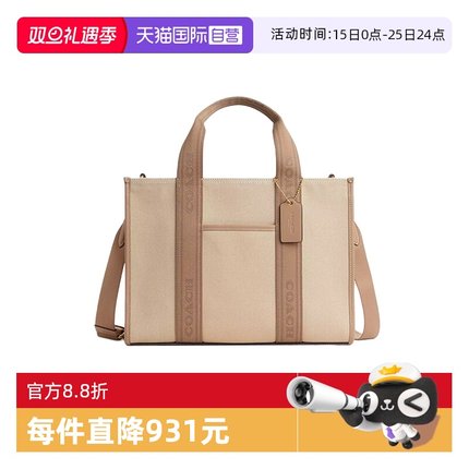 【自营】COACH/蔻驰女士帆布配皮托特单肩斜挎手提包CAK93/CAK94