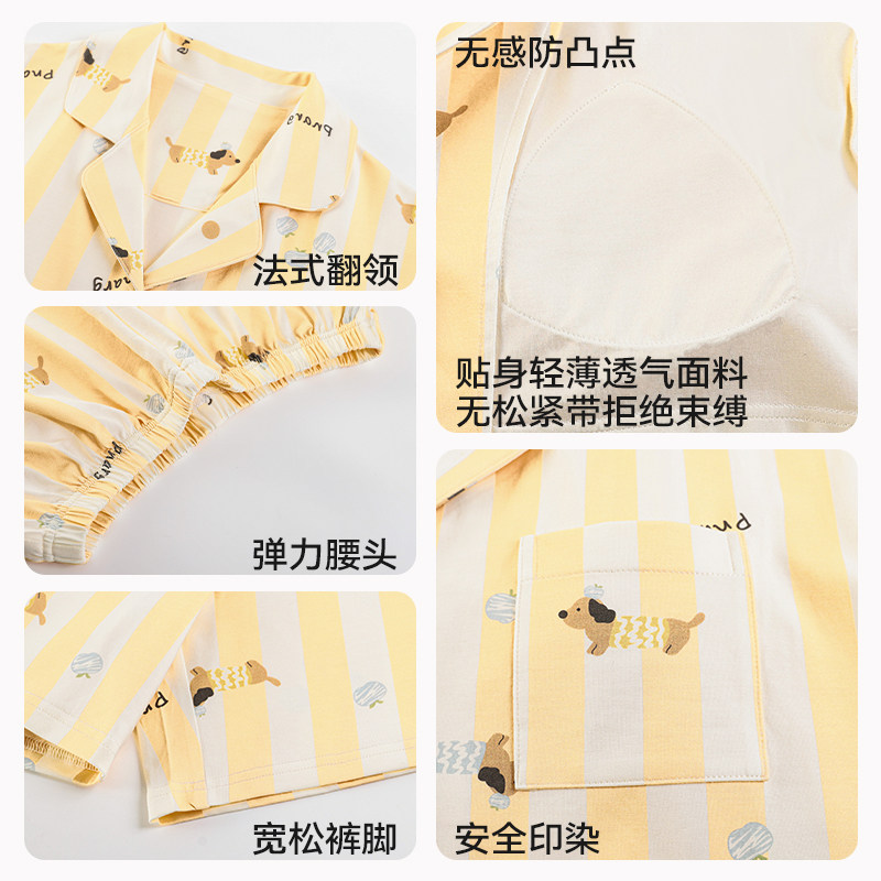 草本初色带胸垫纯棉睡衣女春夏短袖2026年新款卡通条纹家居服套装