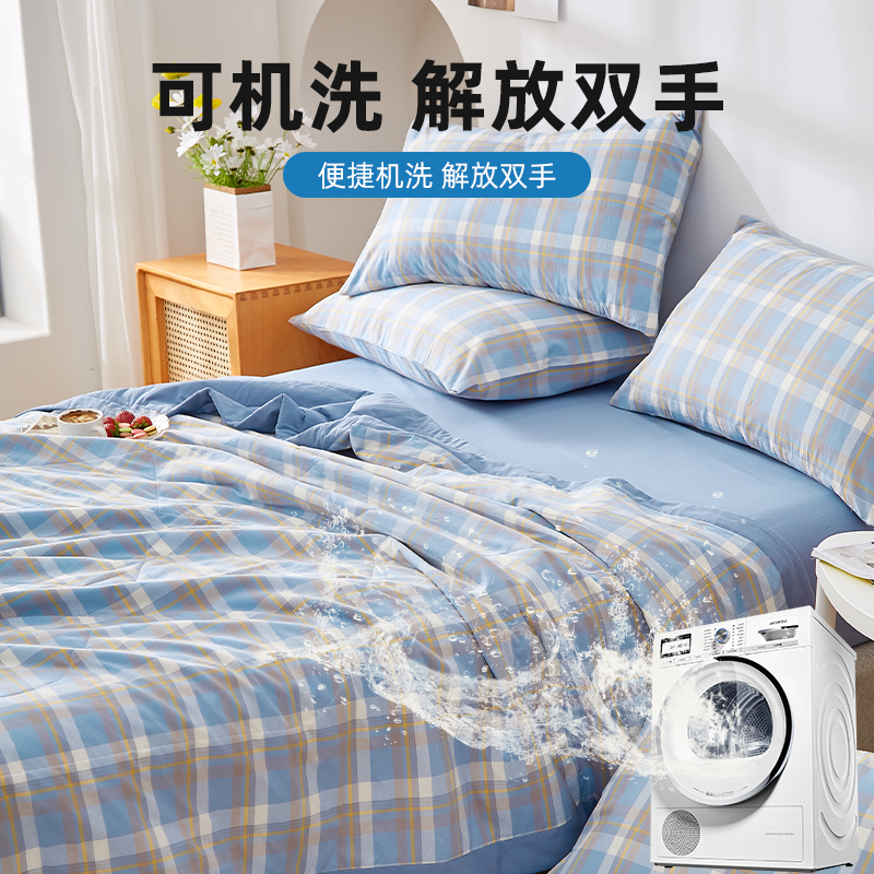 洁丽雅A类新疆棉花被夏被夏凉被纯棉全棉可机洗水洗空调被四件套