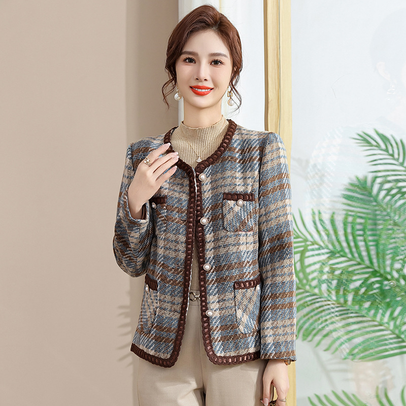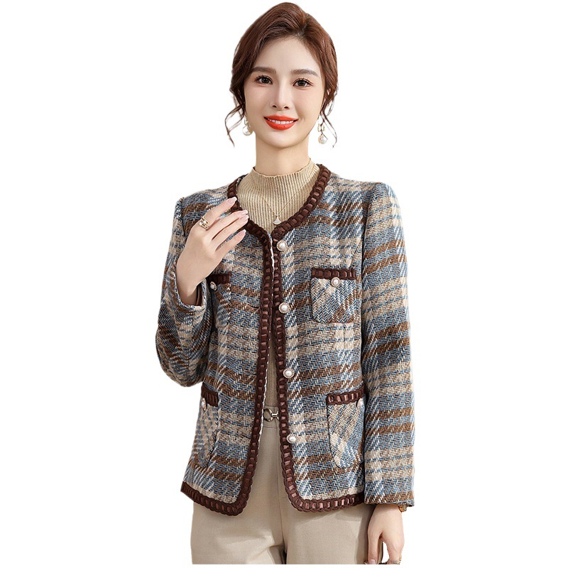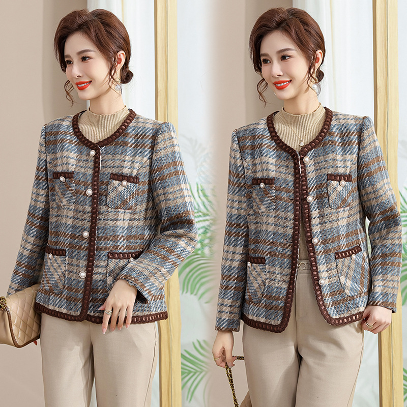 妈妈装春季毛呢短款中年女2025新款中老年女装冬装外套开衫小