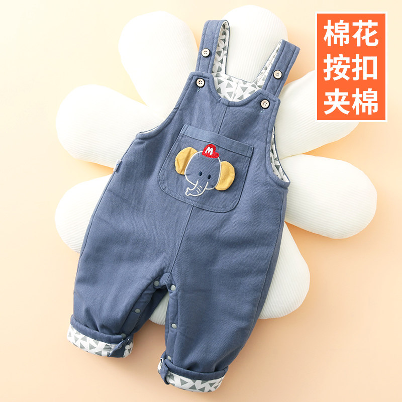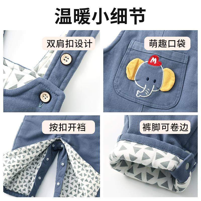 婴儿背带棉花棉裤夹棉按扣开裆男童儿童纯棉裤子宝宝背带裤秋冬款