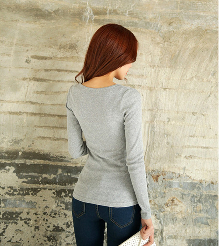 修身螺纹纽扣T恤女2022autumn winter women long sleeve t shirt