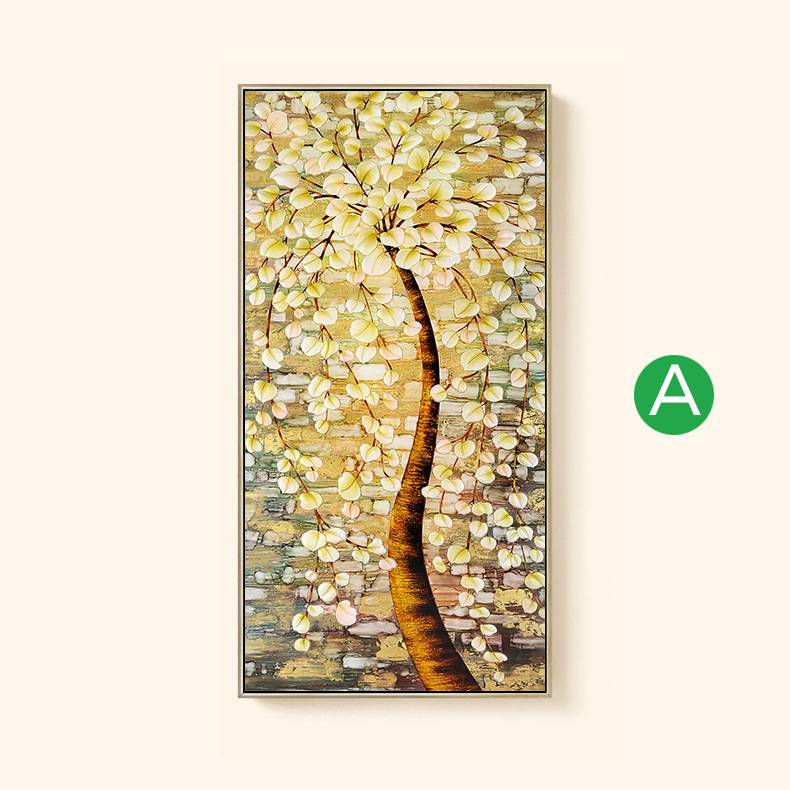 现代风美式发财树玄关装饰画客厅走廊过道竖版欧式油画布挂画壁画
