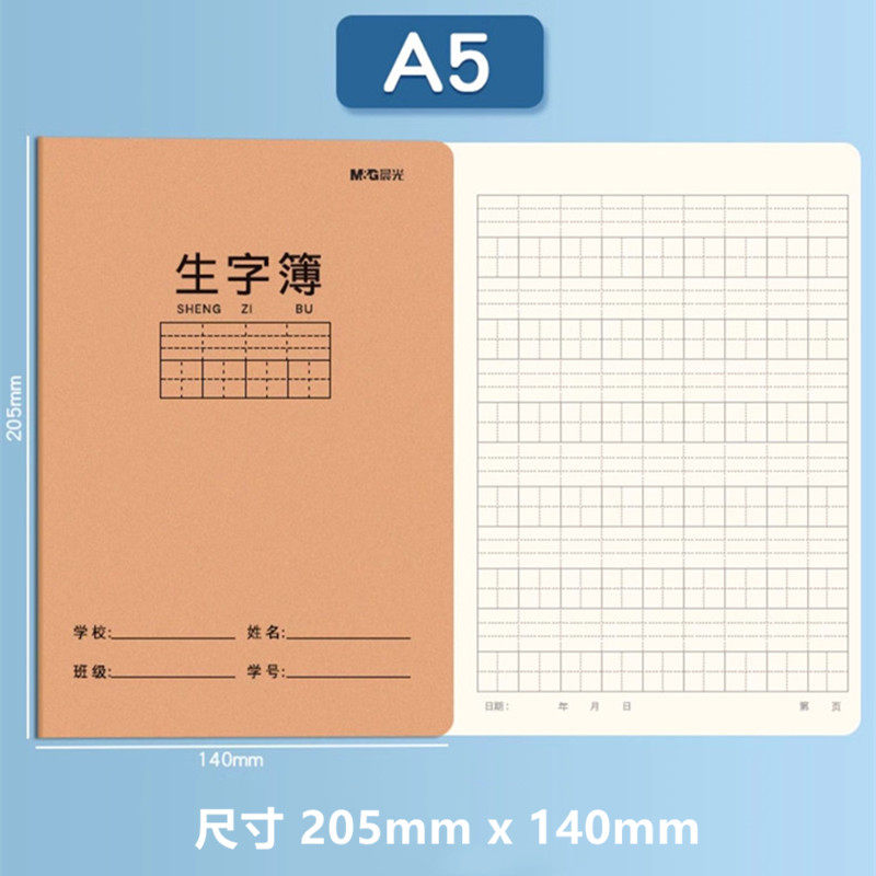 晨光A5数学本加厚牛皮32k英语簿生字本小本田字簿学生单线双行本