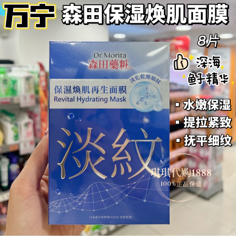 香港购 台湾森田药妆提亮塑颜再生玻尿酸面膜贴8片 补水提亮嫩白