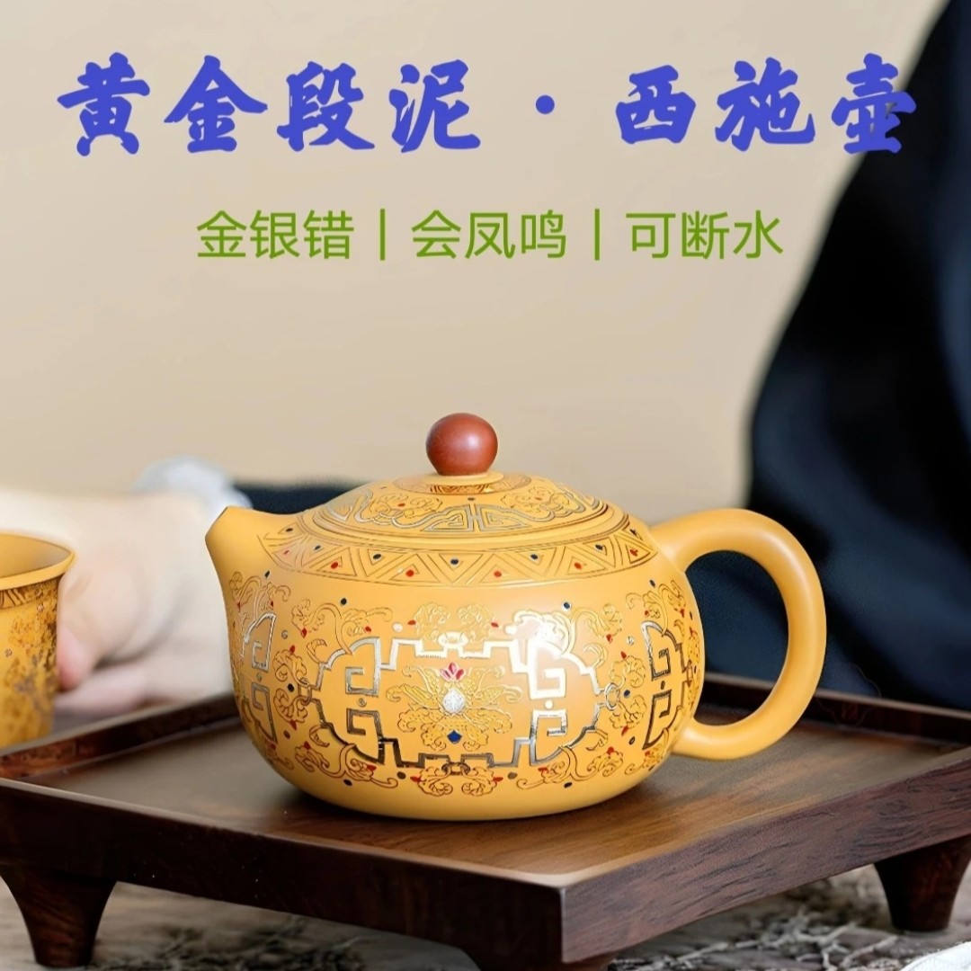 黄段泥原矿紫砂凤鸣壶高档家用纯手工大容量茶壶泡茶专用功夫茶具