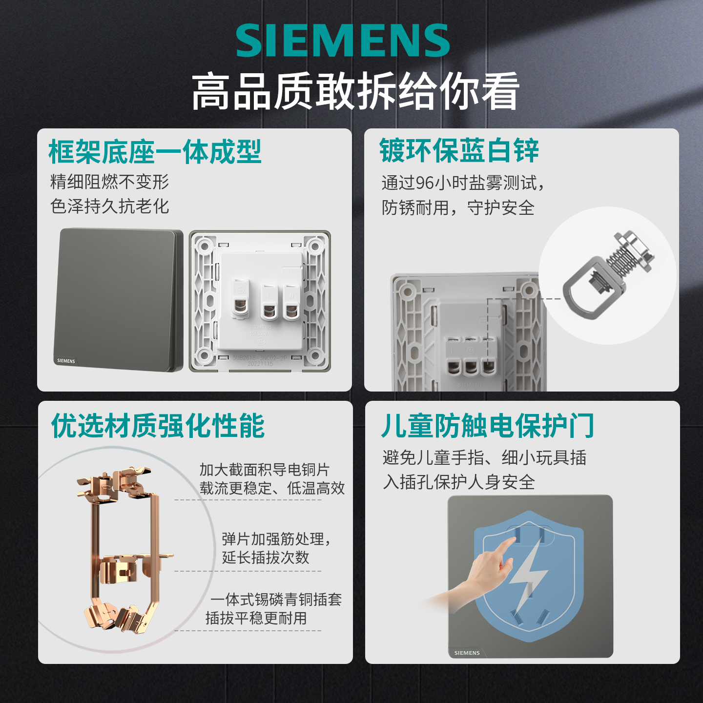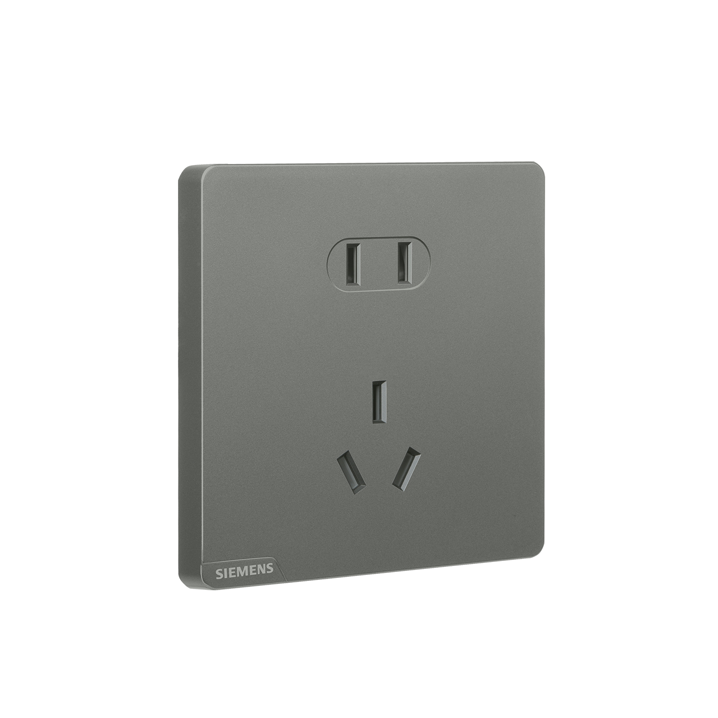 西门子开关插座家用86型皓彩深灰银色五孔带USB单控开关空调电脑