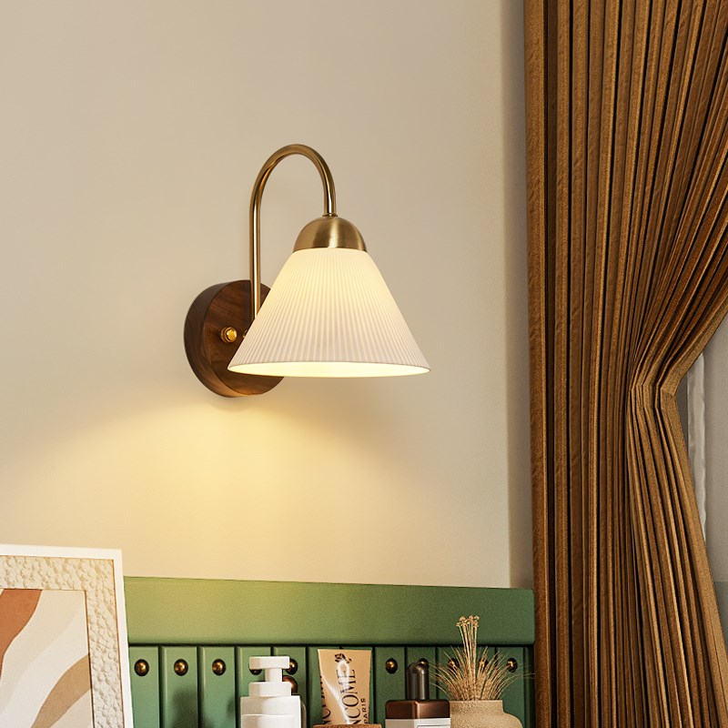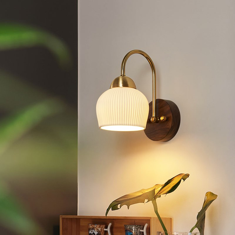复古简约胡桃木壁灯北欧创意过道走廊客厅卧室陶瓷V墙壁灯中山灯
