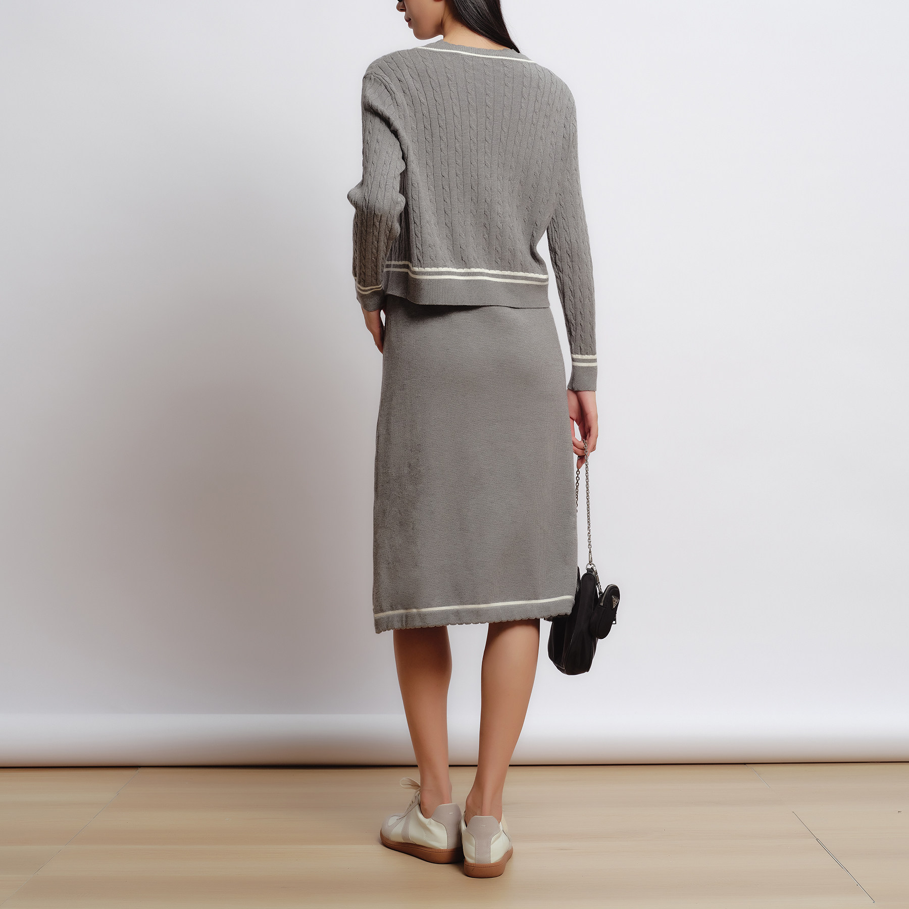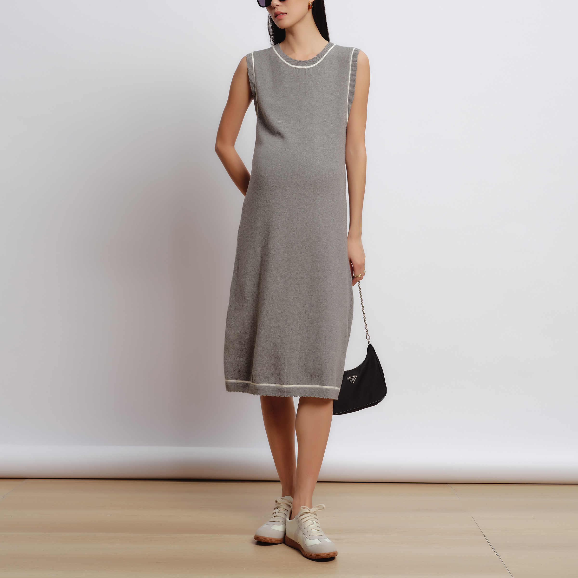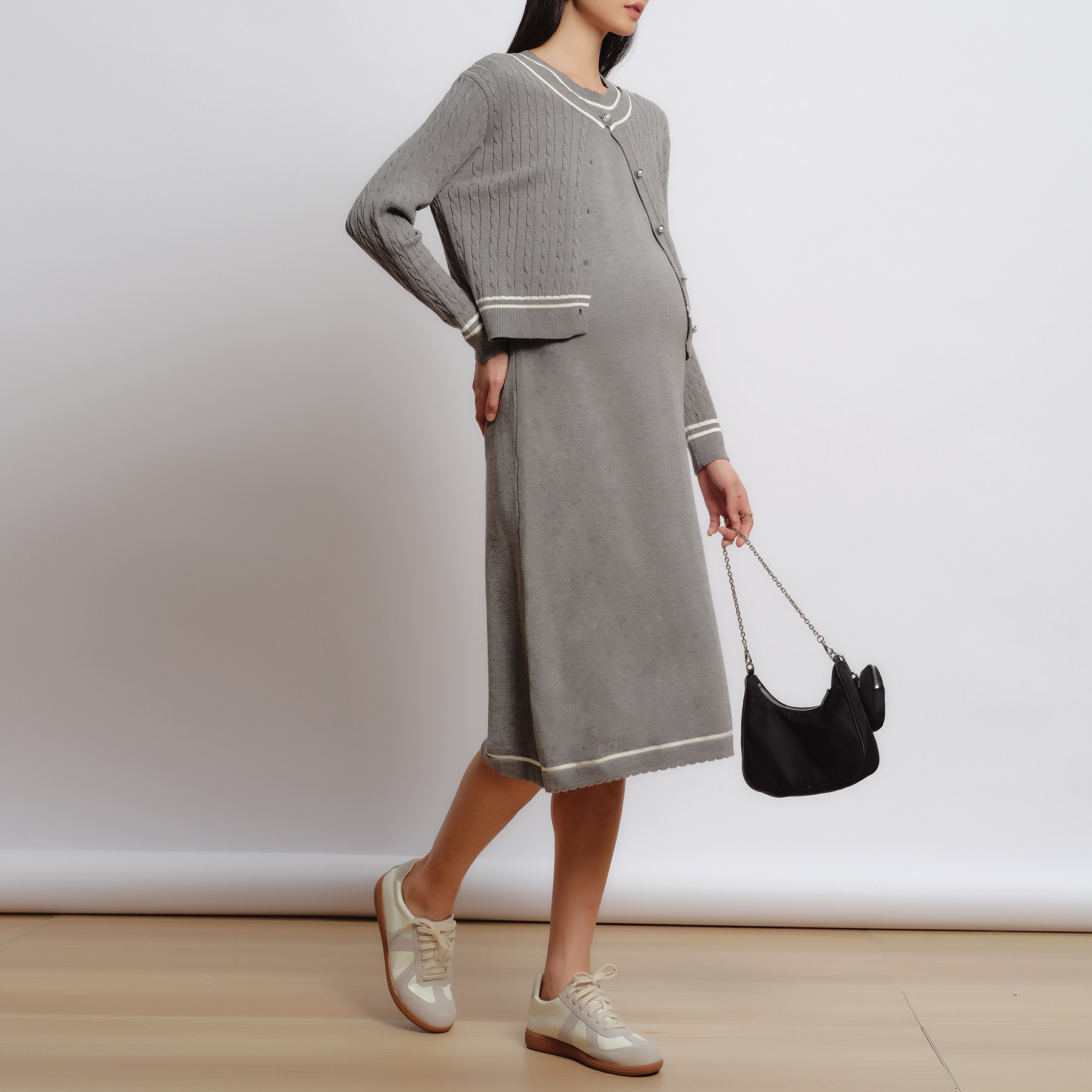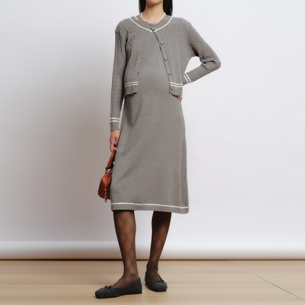 BELLYWEAR孕妇装秋冬新款学院灰针织开衫无袖背心裙两件时尚套装