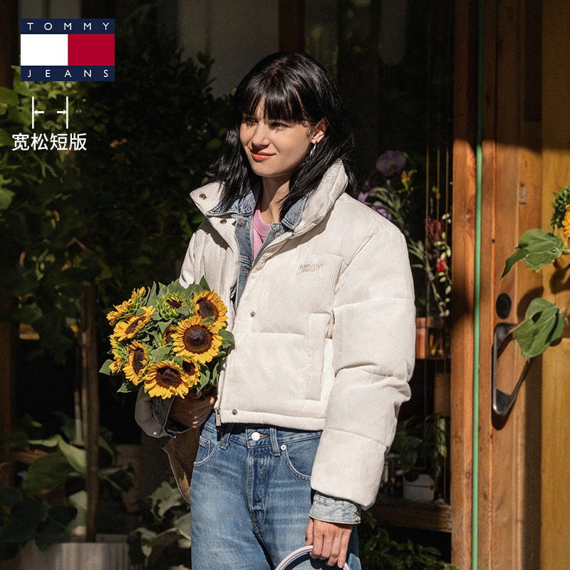 Tommy女装灯芯绒立领短款棉服