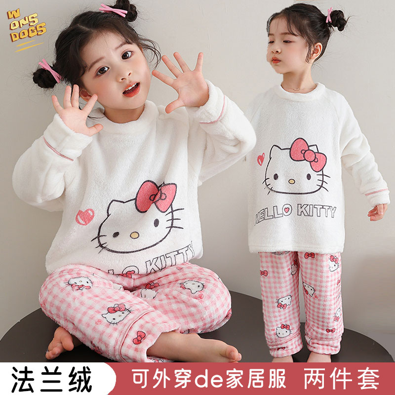 拉布BU秋冬季儿童睡衣女童保暖软糯法兰绒女孩宝中大童家居服套装