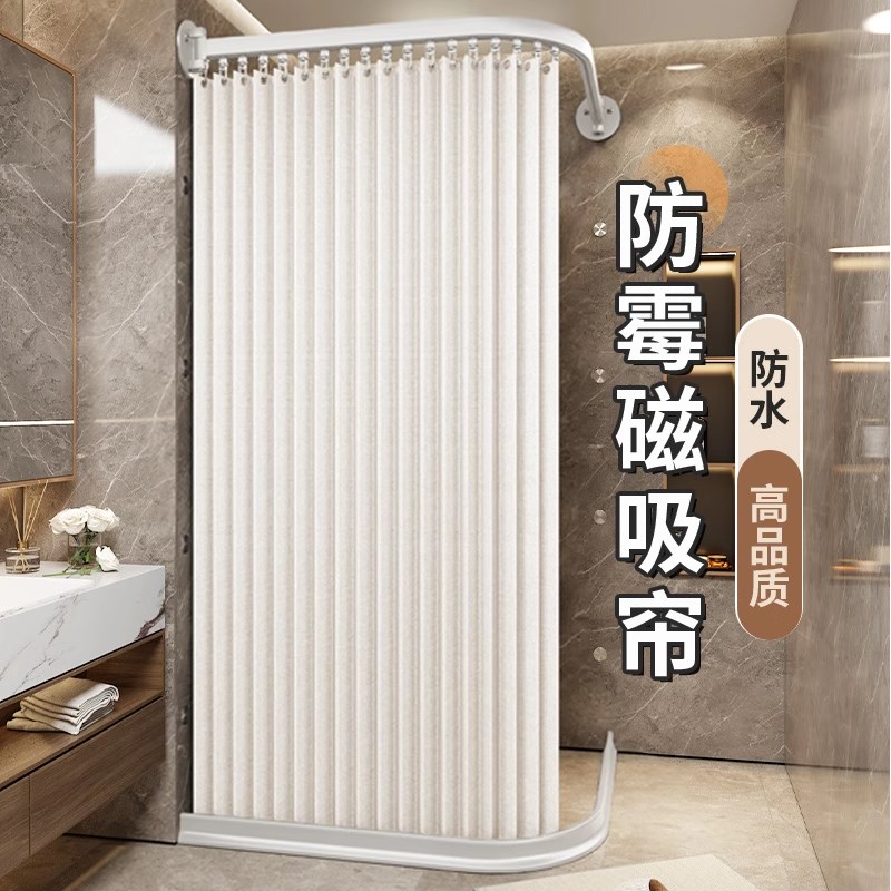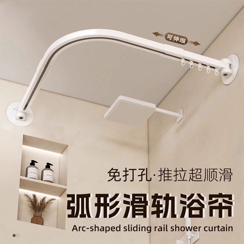 弧形防水浴帘滑轨浴帘杆加厚折叠卫生间洗澡淋浴浴室隔断帘子