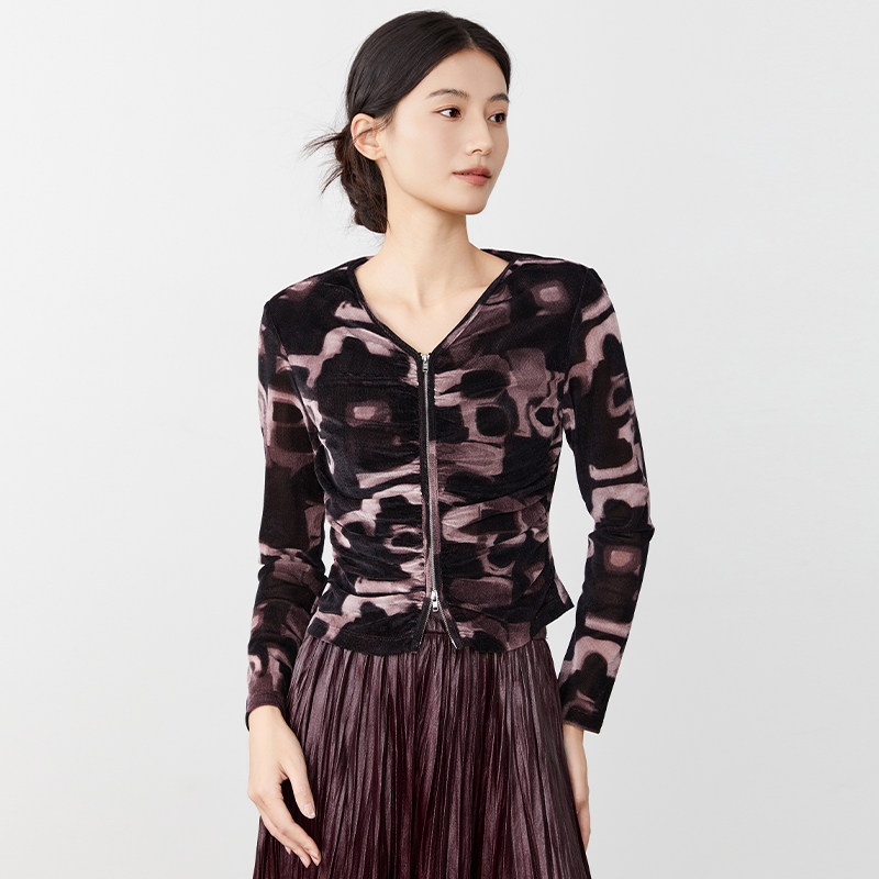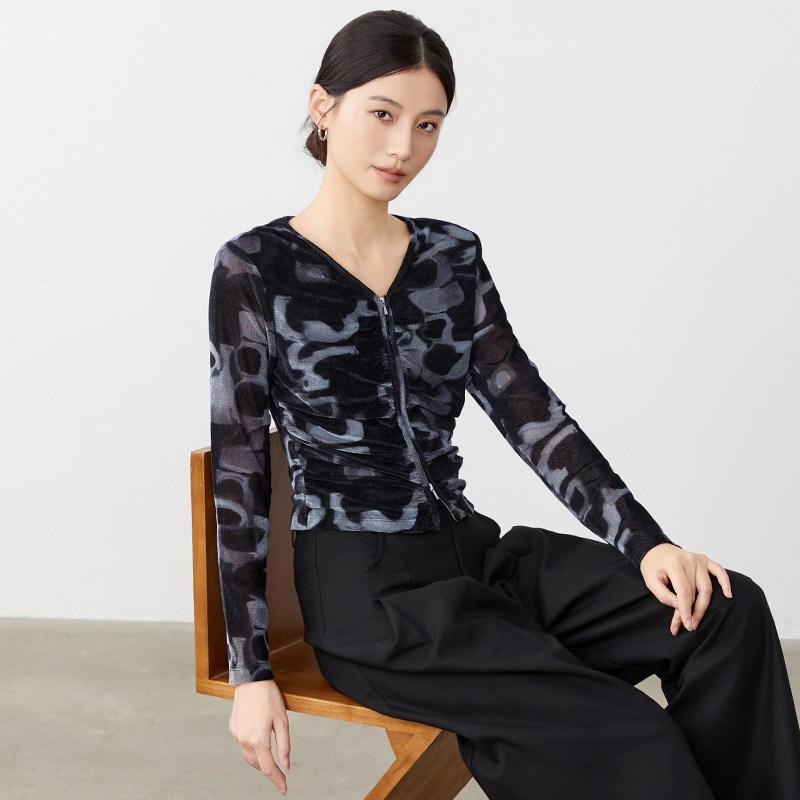 傲丝度植绒长袖T恤V领百搭小衫