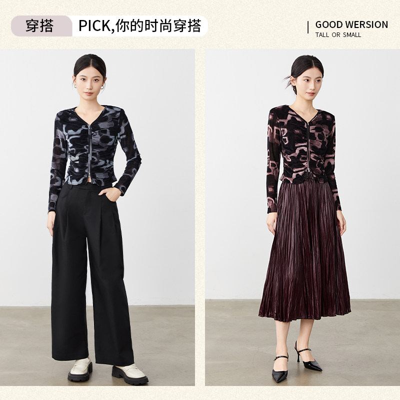 傲丝度V领长袖T恤女2026女装新款高级感植绒打底小衫气质百搭上衣