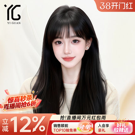 假发女全头套黑长直发真人发丝空气齐刘海自然无痕纳米递针假发套