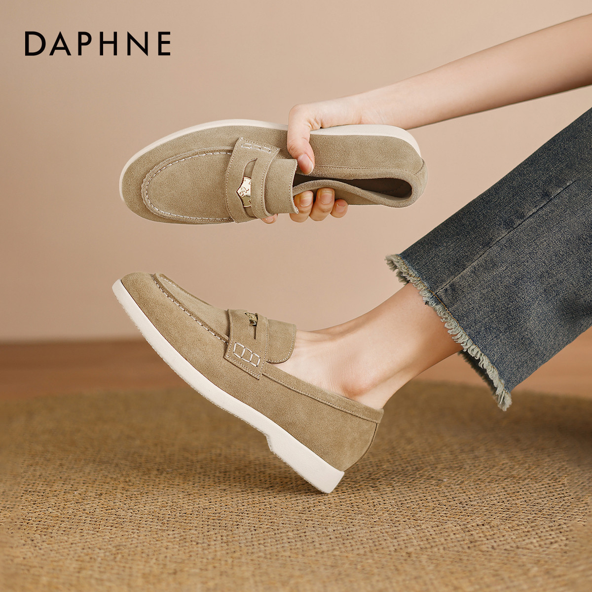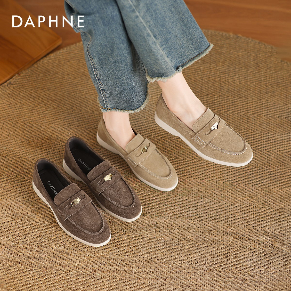 达芙妮平底乐福鞋女2025新款秋季老钱风浅口单鞋一脚蹬豆豆鞋皮鞋