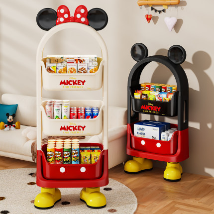 卡通撞色收纳架客厅落地式多层零食置物架家用卧室儿童玩具小推车