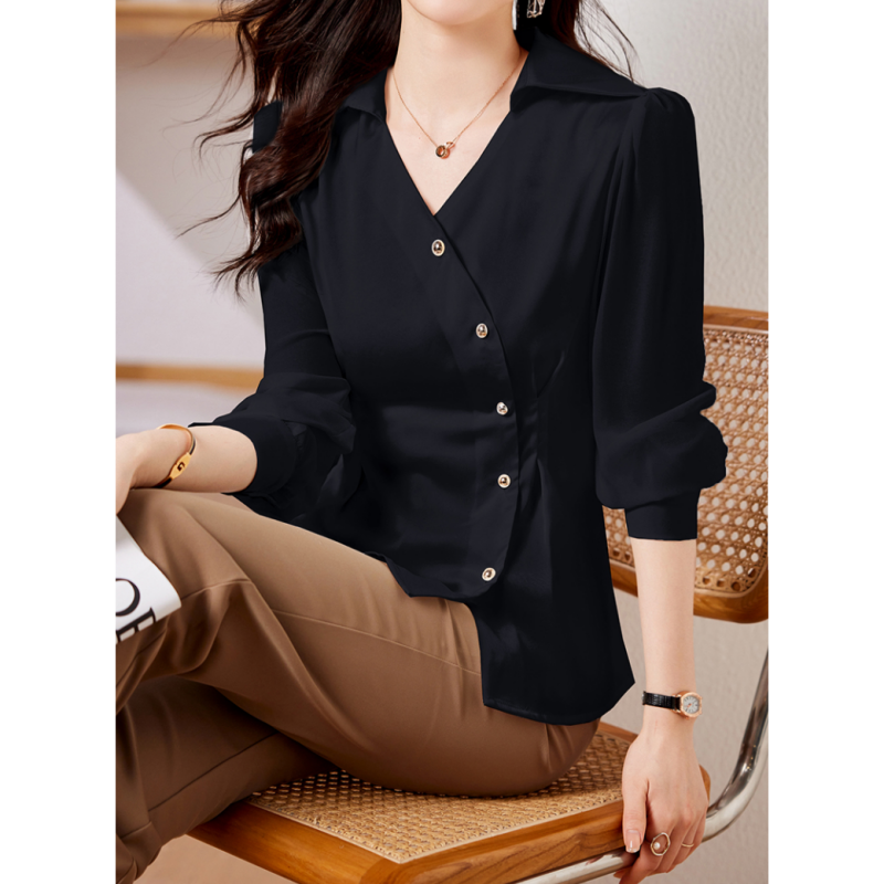 华来阿玛施特2025春新款法式气质雪纺衬衫女小众交叉V领收腰上衣