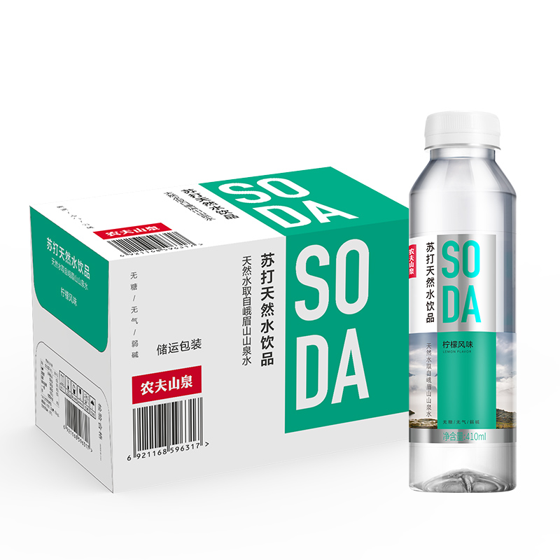 农夫山泉苏打天然水饮品柠檬/白桃无糖饮料0糖0脂0卡整箱15瓶装